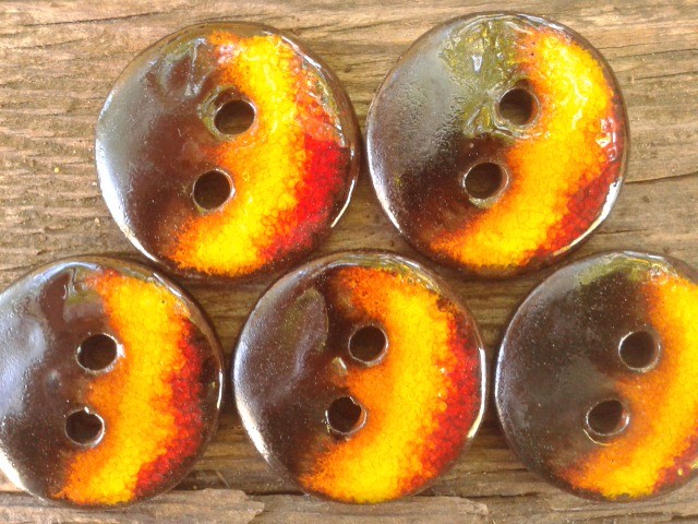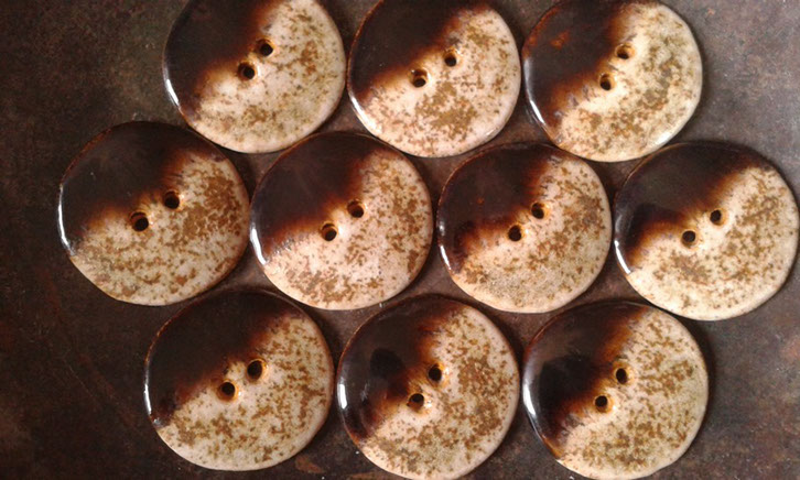V nabídce máme několik desítek tvarů knoflíků různých velikostí v mnoha barevných kombinacích. Knoflíky děláme v omezených sériích (20-30 kusů), zachovávají si tím charakter originálního výrobku.  Větší počty stejných knoflíků pouze na zakázku.
