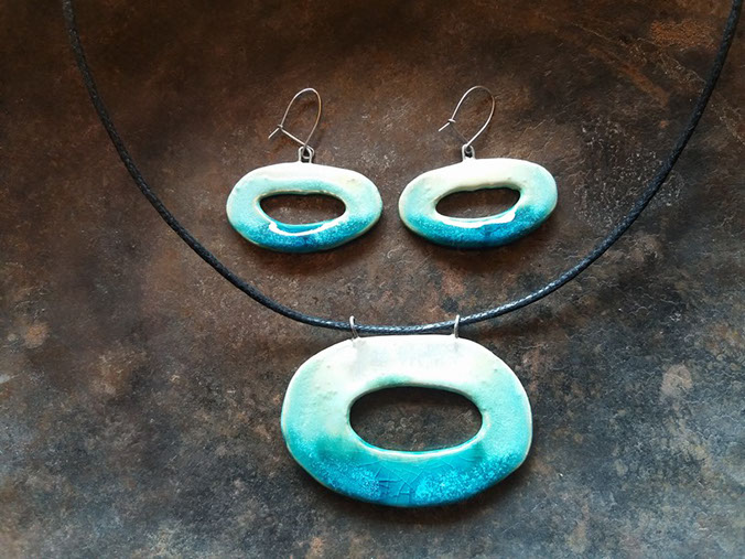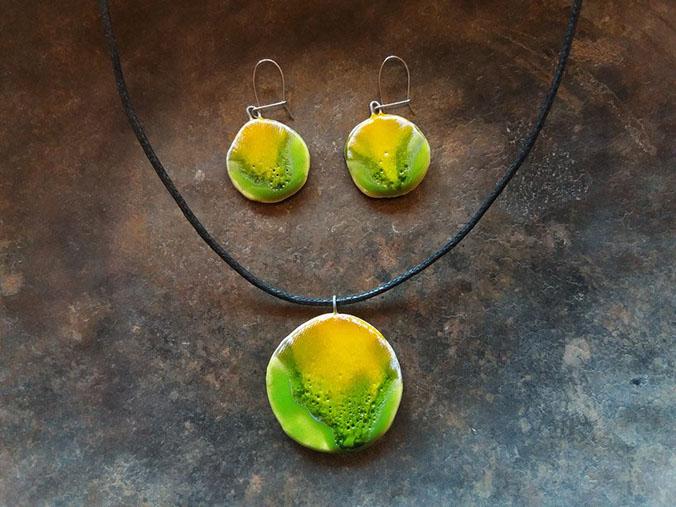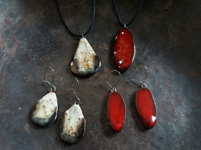 Každý náš šperk je originál. Všechny šperky jsou oboustranně glazované (větší pevnost a dokonalost). Náhrdelníky a přívěšky kombinujeme s přírodní kůží nebo tkanou voskovanou bavlnou. Závěsy u náušnic jsou ze speciální chirurgické oceli, která je vhodná i pro alergiky, některé jsou ze stříbra.