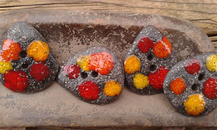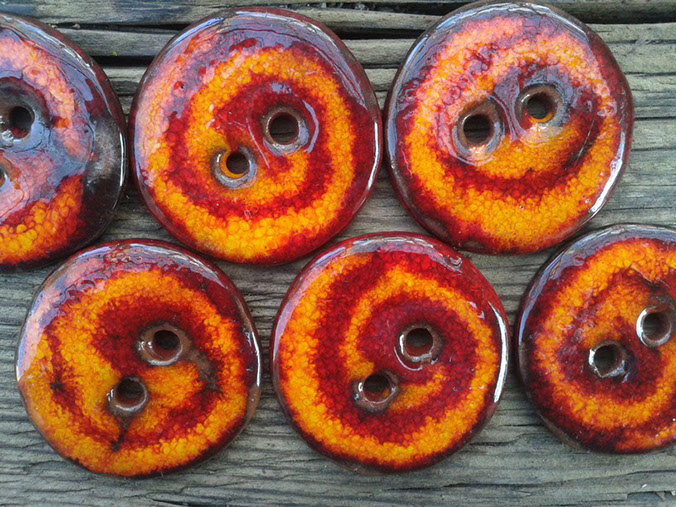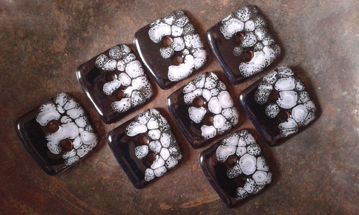 V nabídce máme několik desítek tvarů knoflíků různých velikostí v mnoha barevných kombinacích. Knoflíky děláme v omezených sériích (20-30 kusů), zachovávají si tím charakter originálního výrobku.  Větší počty stejných knoflíků pouze na zakázku.